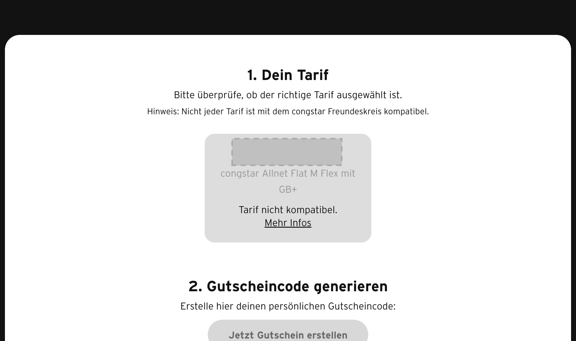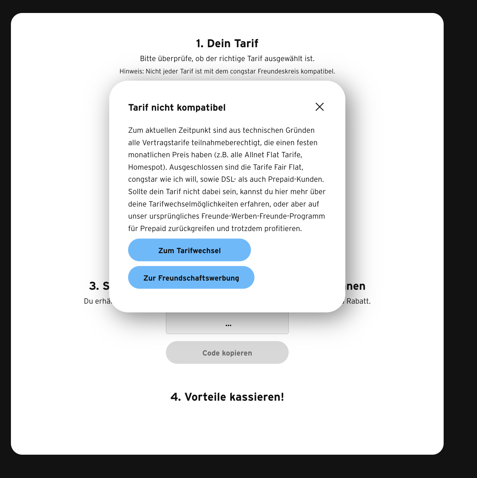 Leider erhalte ich eine Meldung "Tarif nicht kompatibel." (siehe screenshot)
