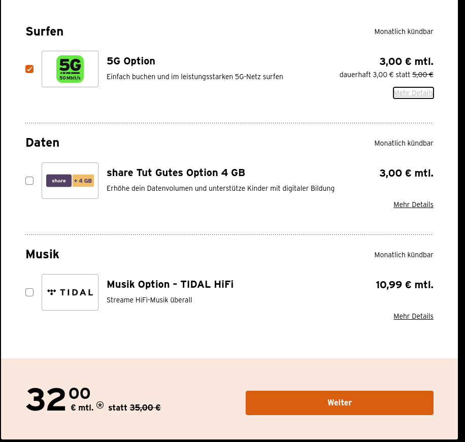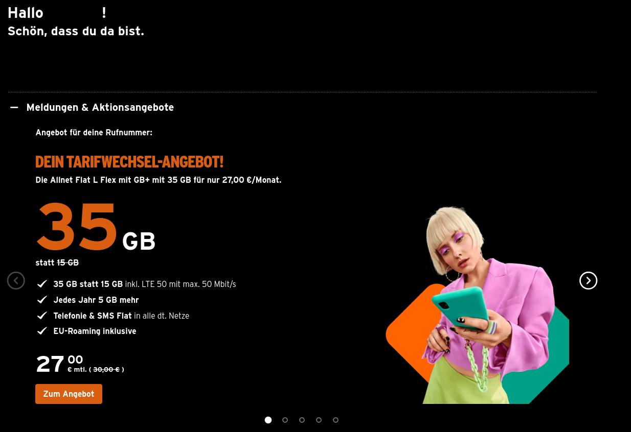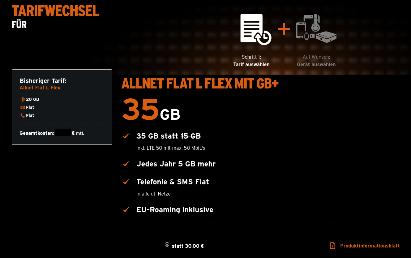 wie schon der Titel aussagt, besitze ich schon den "Allnet Flat L Flex" mit 20GB/Monat. Es wird mir ein Angebot für einen Tarifwechsel unterbreitet, der den Tarif "Allnet Flat L Flex mit GB+" vorschlägt.