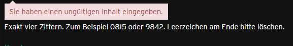 sie haben einen ungültigen Wert eingegeben. ....exact vier Ziffern