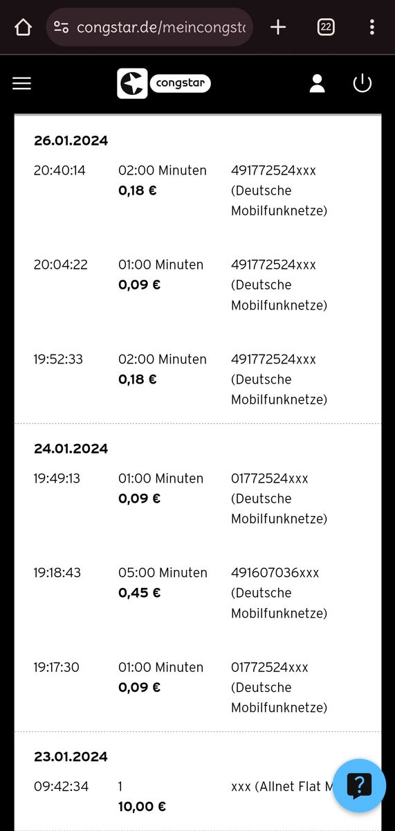 Heute bemerkte ich das mein Guthaben weniger wurde, habe dann auf eurer Webseite den Anrufsprotokoll aufgerufen und dort steht das ich für meine Anrufe bezahlt habe. Das sind normale anrufe für diese habe ich doch eine Flat die eigentlich schon aktiv sein sollte,laut der sms.