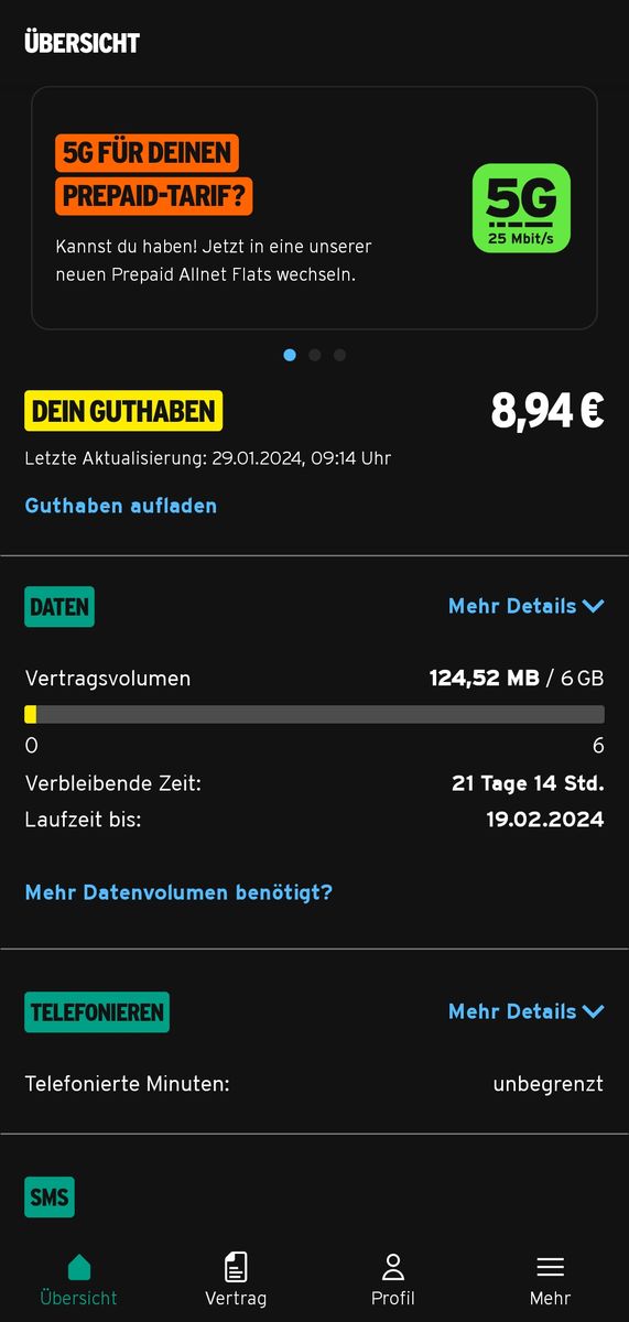 Ja aber am 26.01 war die Flat immernoch nicht aktiv? Ich glaube aber dass Die datenflat schon aktiv war zu dem Zeitpunkt, da ich unterwegs war und mir das neue 5G zeichen aufgefallen ist ,davor hatte ich es nicht. Also internet war schon aktiv aber Anrufflat nicht?