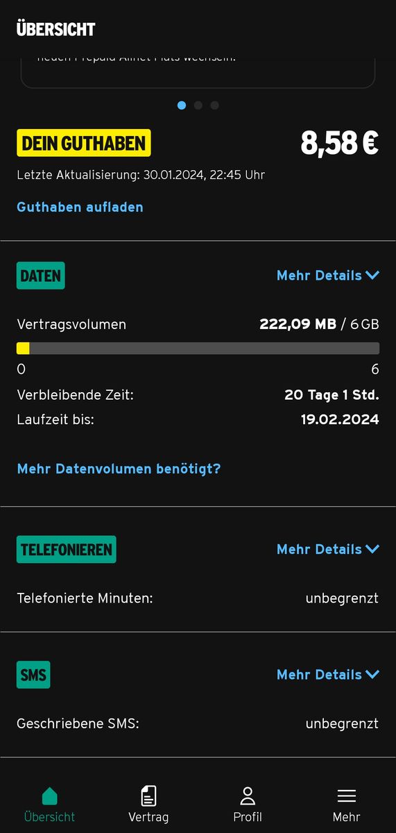 Ich bin auch bisschen verwirrt warum steht in der app das alles aktiv ist und wie viel Internet ich verbraucht habe von 6GB wenn ich die Flat garnicht habe?