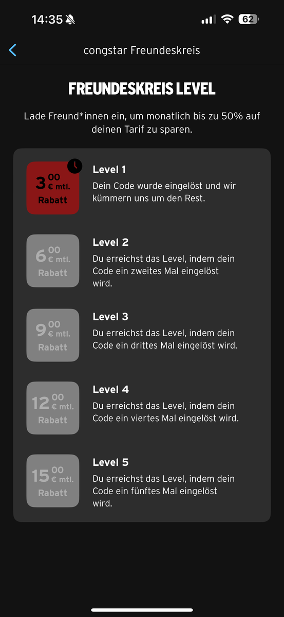 Der geworbene hat den Rabatt… nur ich nicht. Wie gesagt die 3 Rabatte die ich hab sind älter. Normalerweise müsste ich 4 haben.