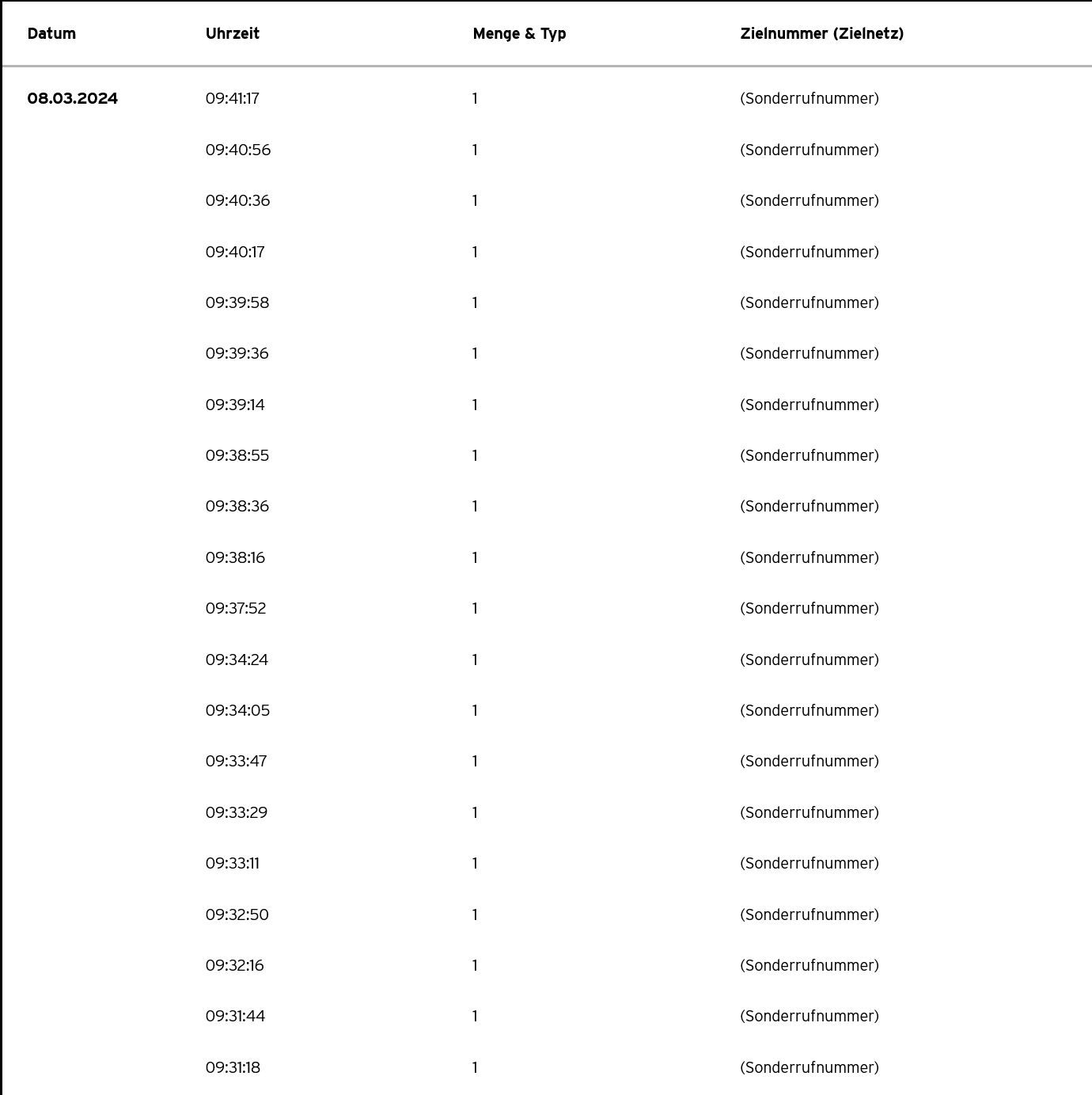Beim Einloggen in ihren Congstar-Account habe ich dann gesehen, dass innerhalb von 10 Minuten 20 (!) Verbindungen zu Sonderrufnummern aufgebaut wurden: