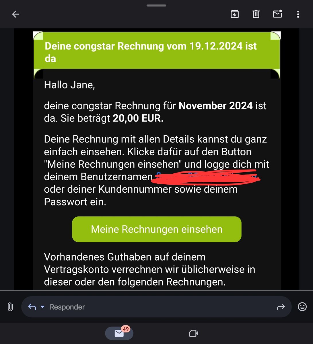 Und in der Congstar App Es erscheinen nur Rechnungen für 29,99 Euro.