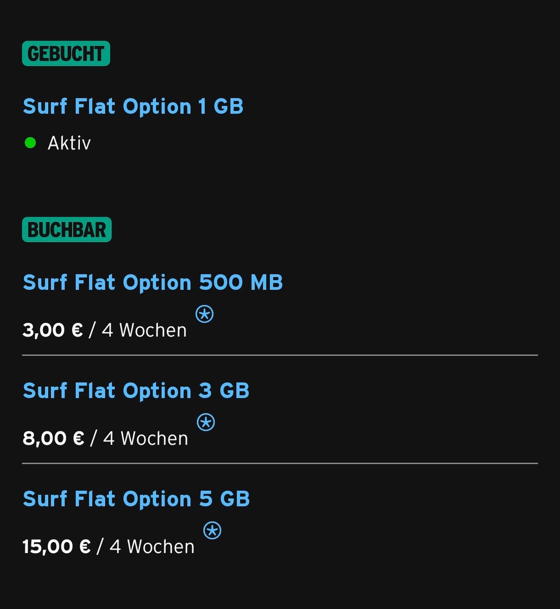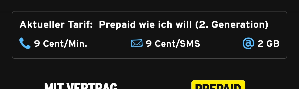 habe den Prepaid Tarif für meine Tochter gebucht. Laut "Vertrag" und Buchungsdaten sollte der Tarif 2 GB haben (siehe Screenshot 1), was auch am Anfang geklappt hat. Seit einiger Zeit bekommt sie aber nur noch monatlich 1 GB und in den Optionen gibt es auch nur die Möglichkeit 1GB zu buchen (siehe Screenshot 2).
