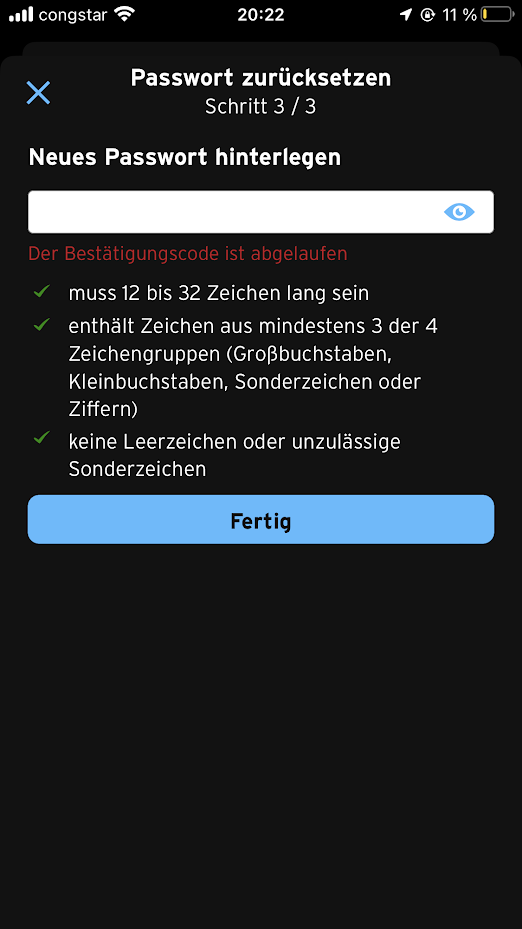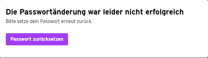 "Die Passwortänderung war leider nicht erfolgreich, bitte setze dein Passwort erneut zurück"