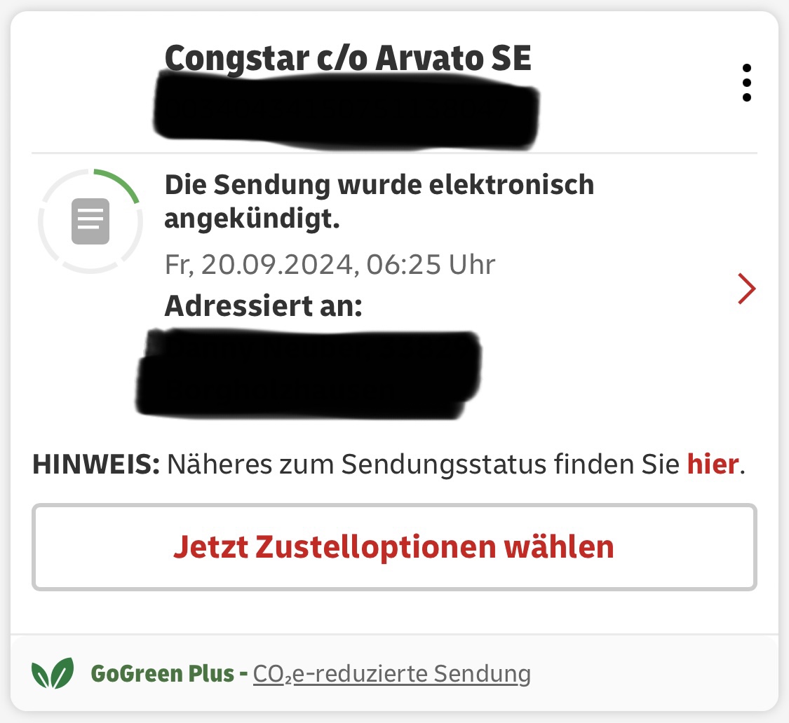 Gestern Abend gegen 22:30 Uhr Auftragsbestätigung erhalten und Tracking Nummmer ich denke nicht das es heute noch Pünktlich ankommt aber zumindest morgen …