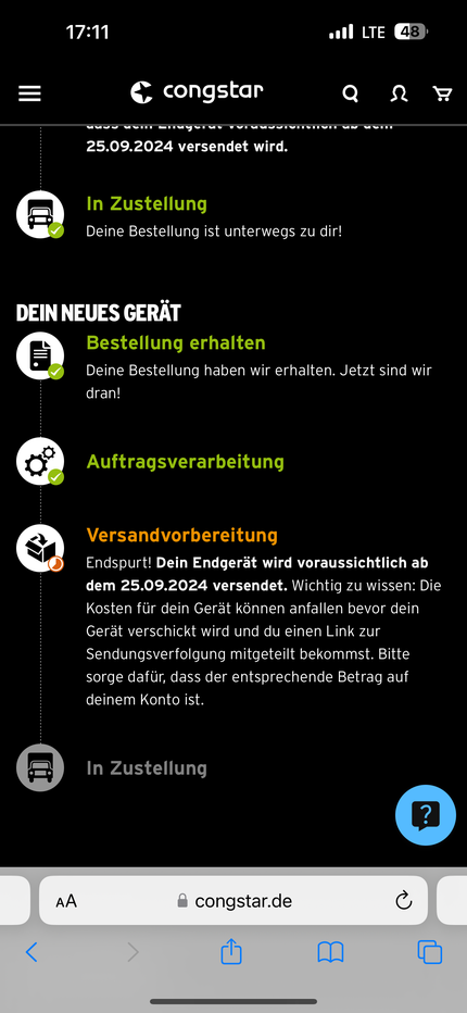 Ich bin von Natur aus ein sehr ungeduldiger Mensch, aber in diesem Fall habe ich Verständnis. Congstar kann nichts dafür, sondern eher Apple. Dasselbe Problem gab es bereits beim iPhone 14 Pro Max. Damals hatte ich es vorbestellt und erst zwei Monate später erhalten – und das bei 1&1.