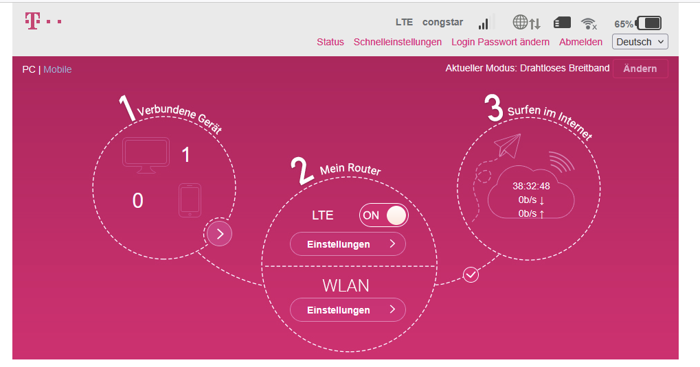 Mein Problem ist ja, der LTE Router zeigt fromm und frei an, LTE Congstar verbunden. Aber jedweder Verbindung durch den Router kommt nicht zustande.