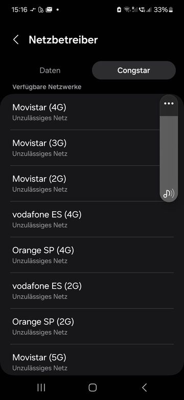 leider funktioniert mein Roaming nicht, es liegt nicht an meinem Endgerät und auch nicht am Netz. Es wurden mehrere Geräte getestet in 2 Ländern. Es liegt an den Roaming-Einstellungen durch Congstar. Es ist wohl keine Roaming-Sperre gesetzt, trotzdem verbindet sich die Sim-Karte nicht mit dem Mobilfunknetz. ALLE Netze (in diesem Fall in Spanien) werden im S24 als unzulässiges Netz angezeigt. Im Status steht bei Roaming: Kein Roaming.