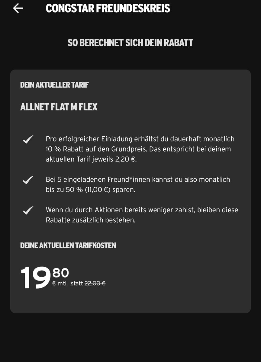 Ich habe ebenfalls in der MyDealz Community gelesen, dass ihr auch Bestandskunden einen Vorteil von 2,20 gewährt. So hat es ein Mitarbeiter von euch formuliert. (CongstarHilft).