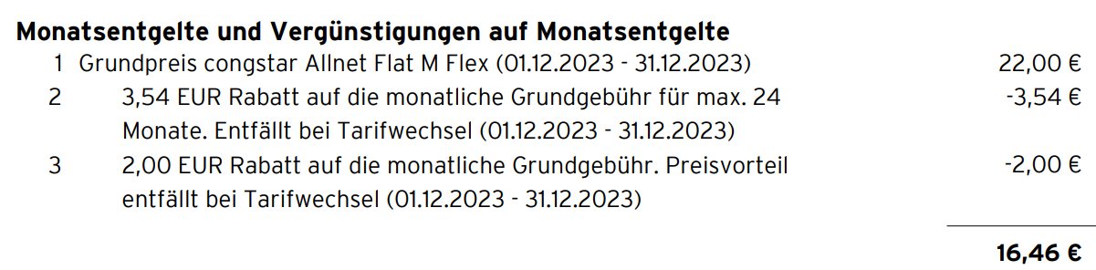 ich buche dir den Tarifwechsel gerne. Ein CB-Rabatt ist nicht möglich, da du in deinem aktuellen Tarif auch keinen CB Rabatt nutzt. Ich kann dir aber einen gleichwertigen Rabatt über 2,20 Euro einstellen. Mit der 5G Option zusammen kommst du dann auf einen Monatspreis von 22,80 Euro. Bist du damit einverstanden?