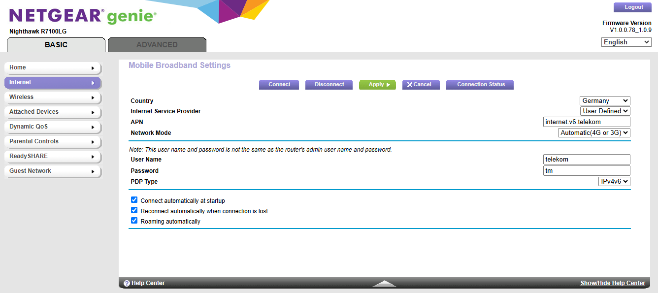 Ich möchte meine Router-SIM-Karte (Congstar Homespot tarif) in meinem Modem-Router Netgear R7100LG (Baujahr: 2022) verwenden. Ich habe alle verfügbaren APNs im Internet ausprobiert und auch einen aus dem Online-Chat mit Ihrem Kollegen erhalten, der jedoch nicht funktioniert hat.