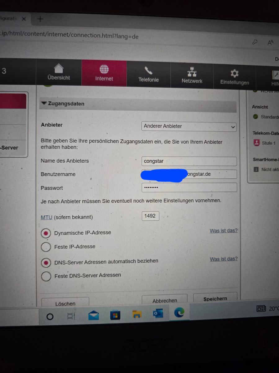 Bei uns ist es das selbe. Speedport Smart 3 seit gestern congstar und kein Internet. Diverse Anrufe mit congstar, zugangsdaten sind richtig eingegeben aber angeblich liegt es an uns das wir den Router falsch konfiguriert haben... die Dame am Telefon eben war nett und versuchte zu helfen aber ändert halt trotzdem nichts an der Tatsache das wir weder internet noch Fernseh haben
