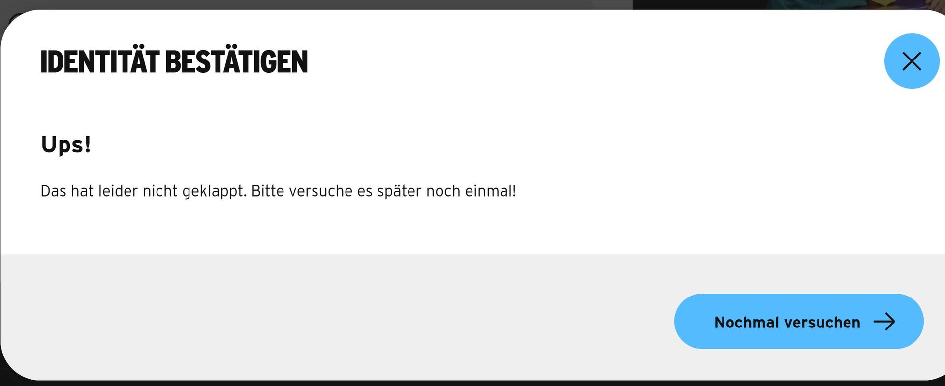 Beim Versuch die Hauptsimm in eine eSim umzuwandeln, kommt es wiederholt zu einer Fehlermeldung: "Identität bestätigen Ups,