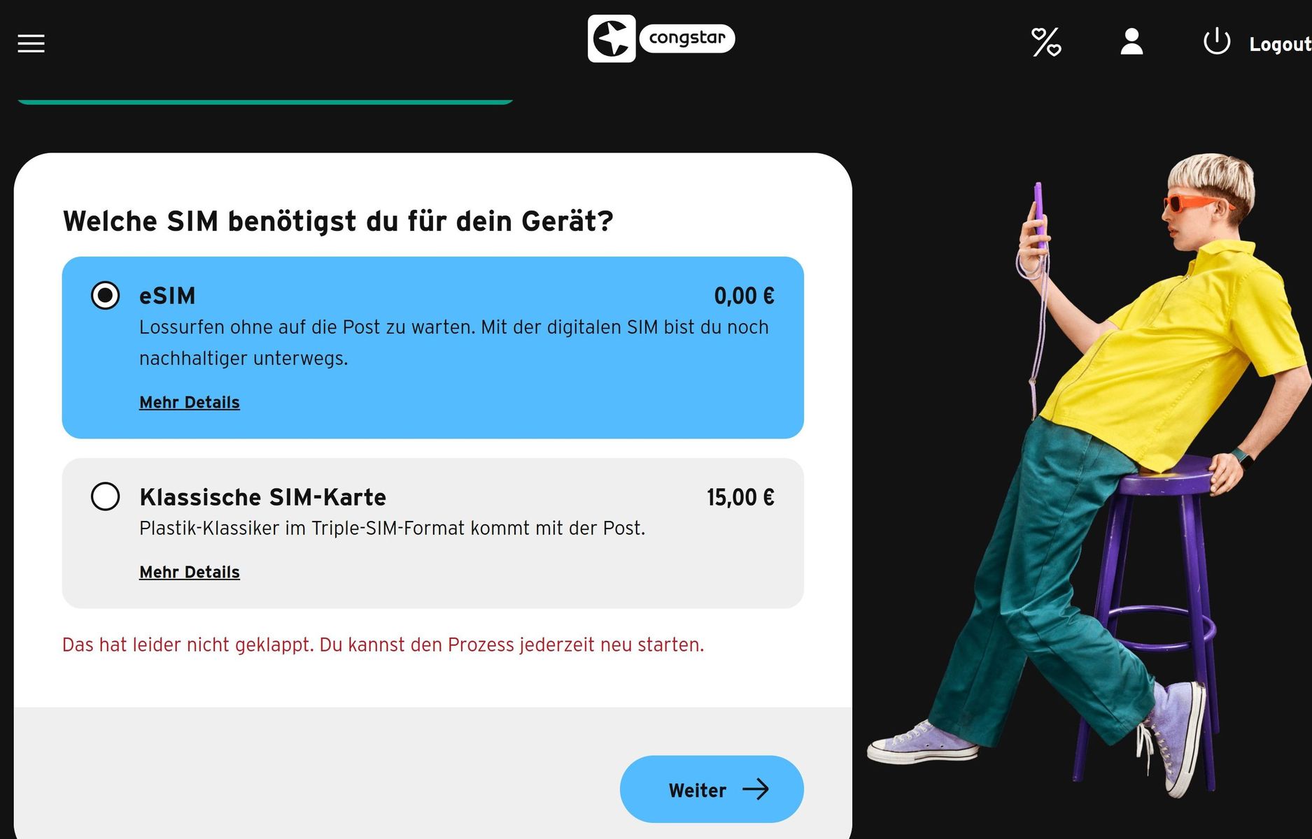 Ich war viele Jahre mit der Congstar App und dem Kundencenter und dem Support zufrieden, aber mit meinem neuen S25 Ultra, der neuen eSim-Multisim und dem Paar-Vertrag geht nichts mehr.