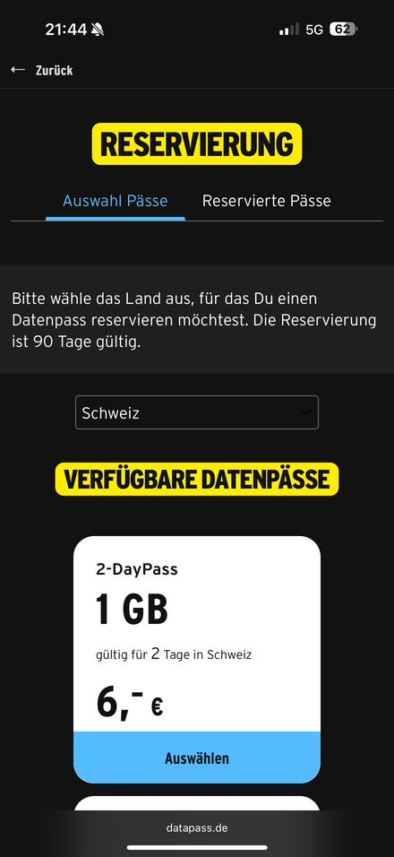 Ich muss einmal blöd fragen: Auf datapass.de wird die Schweiz weiterhin gesondert gelistet und mir werden auch Datenpässe zur Reservierung angeboten. Ist da irgendwas noch nicht umgestellt?