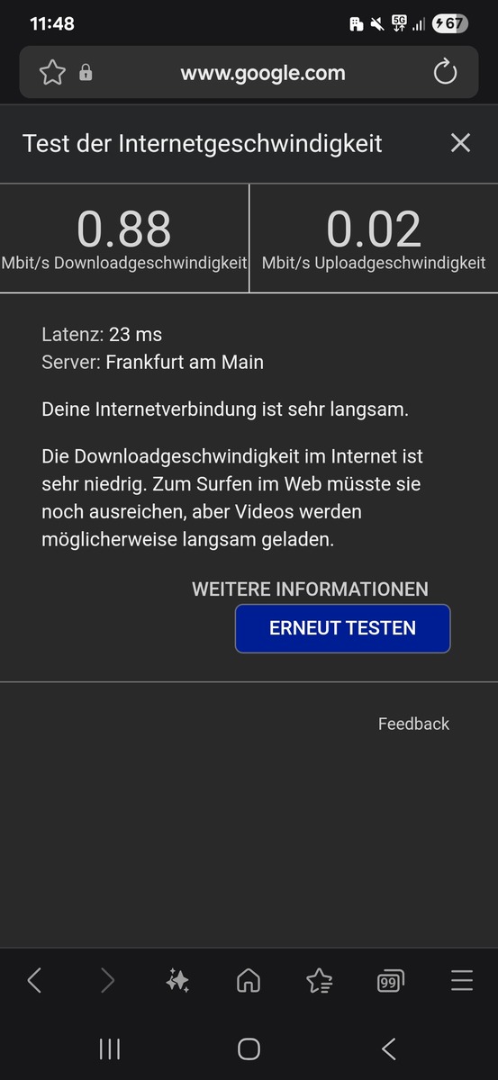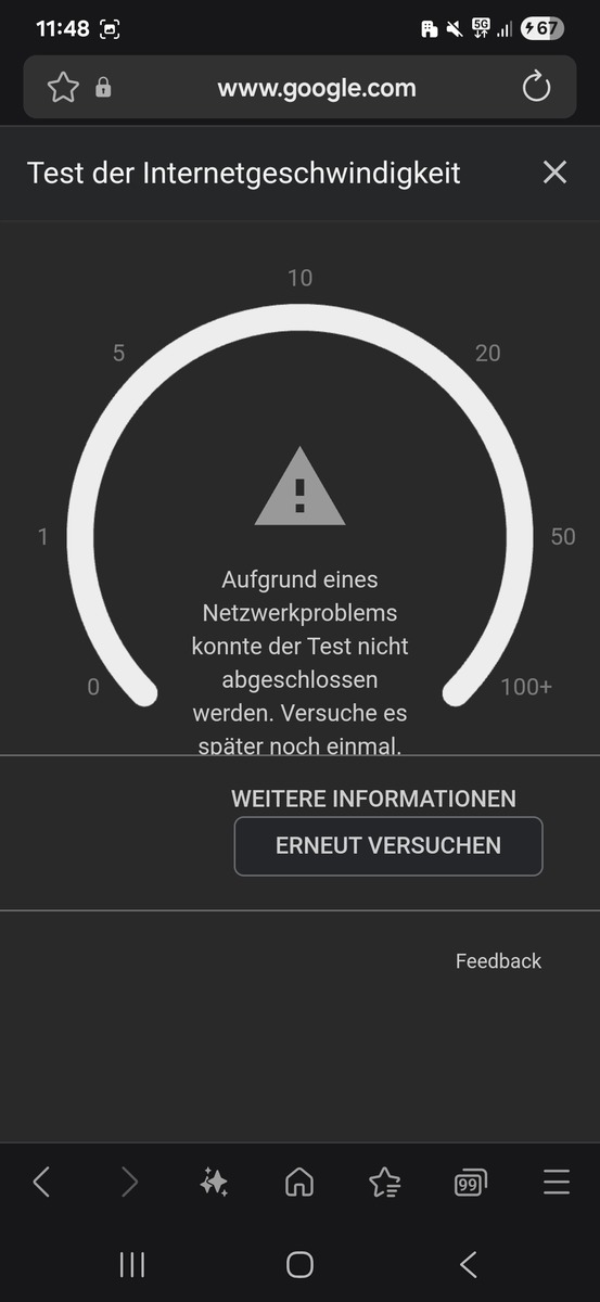 Hallo, schon mal vielen Dank für die schnellen Antworten, anbei zwei aktuelle Screenshots. bei dem ersten war kurz zuvor noch LTE+, sodass die Datenmessung dann sogar fehlgeschlagen ist. Kurz danach hatte ich dann wieder 5G wo zumindest wieder ein wenig Leistung möglich war.
