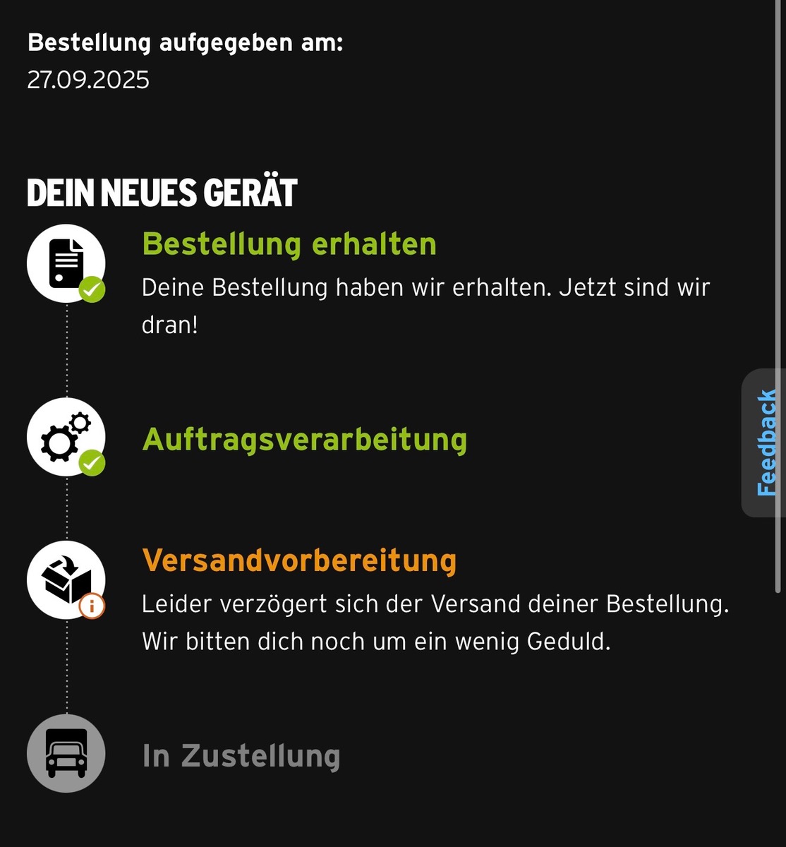 Ich habe am 27.09. bestellt. Dann könnte ich mit Glück ab nächste Woche mit dem Versand rechnen.