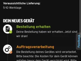 Lieferstatus eures Endgeräts EclipseKitsune 14. Oktober 2025 um 10:14 Hallo liebes Congstar Team!Wann kann ich ungefähr mit meiner Lieferung rechnen? Habe letzte Woche bestellt abgebucht wurde die Anzahlung bereits auch(Iphone 17 Pro 256GB Orange)