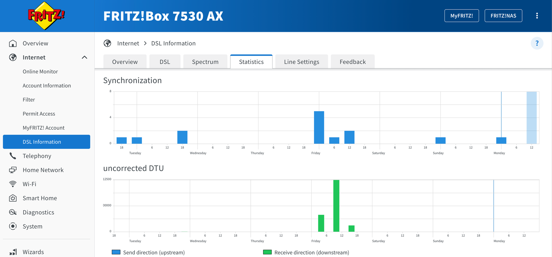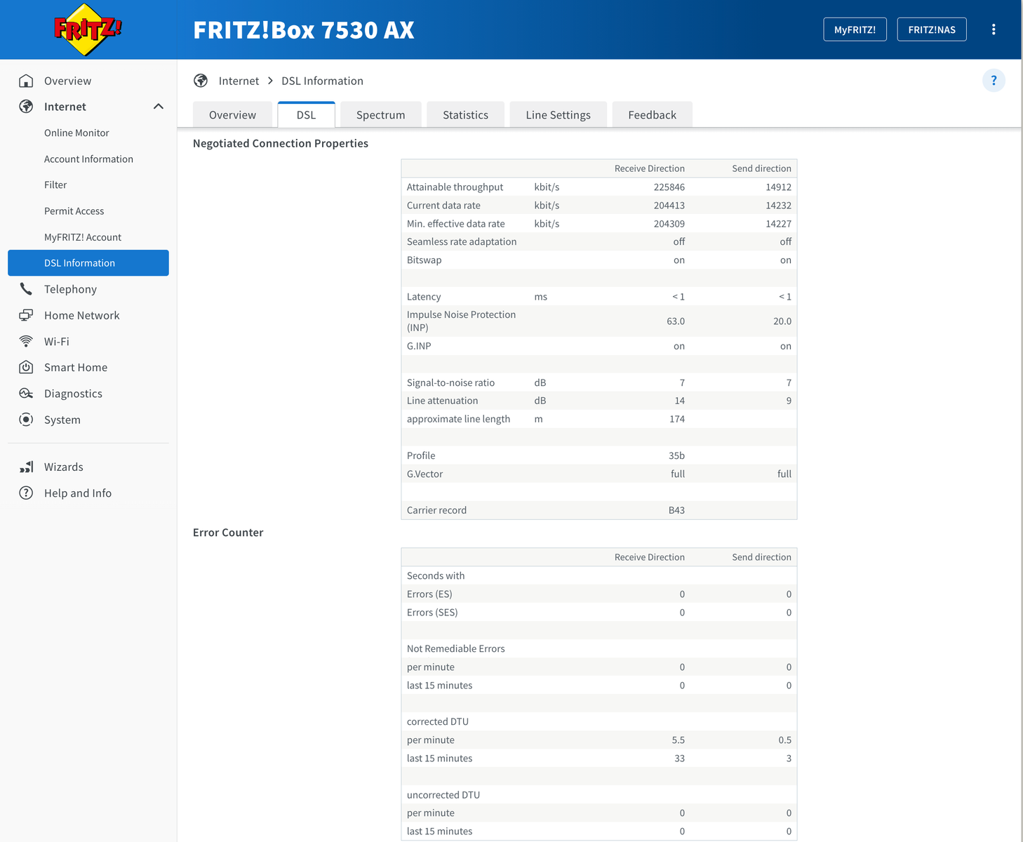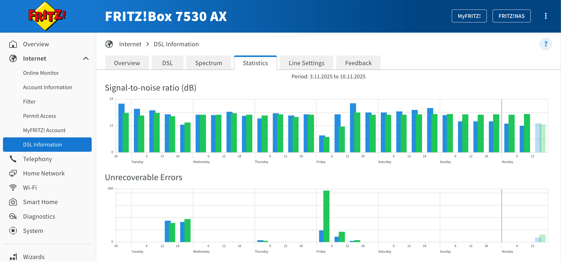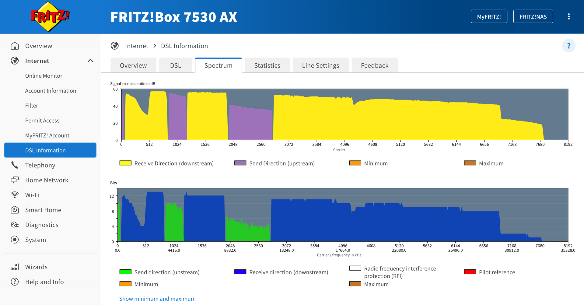 Im Anhang habe ich Screenshots aus dem Router-Dashboard hinzugefügt (Protokolle, DSL-Spektrum und Statistik).