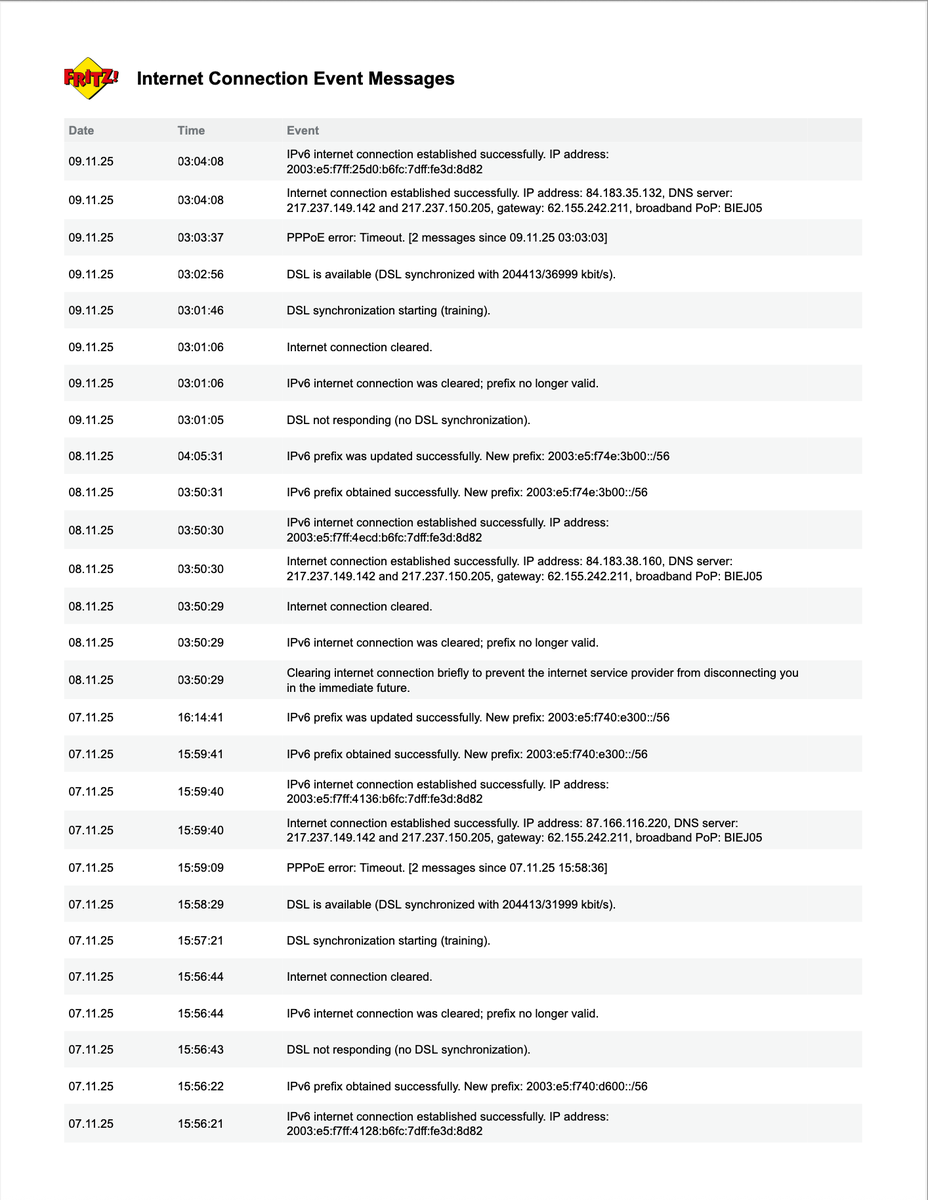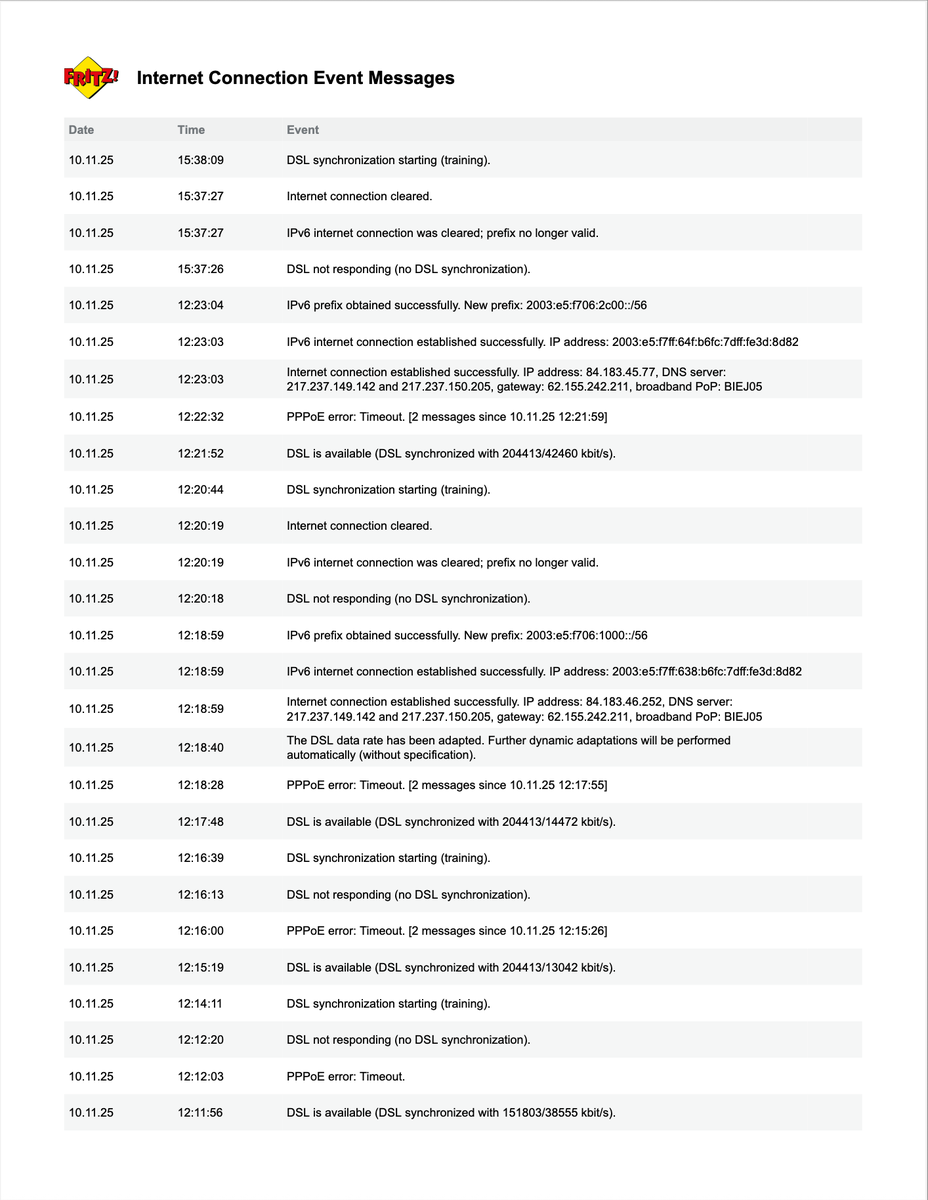 Gerne inklusive Screenshot und/oder Logfile (z.B. Ereignisprotokoll)PPPoE error: Timeout.