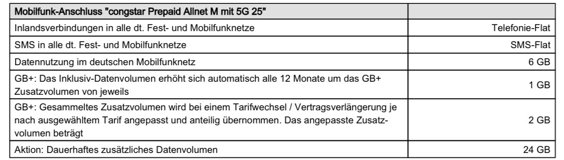 Nur um es noch mal aufzuführen: Umstellung auf PrepaidAllnetM mit 5G 25” mit dauerhaft 30GB für 10€/4 Wochen. -