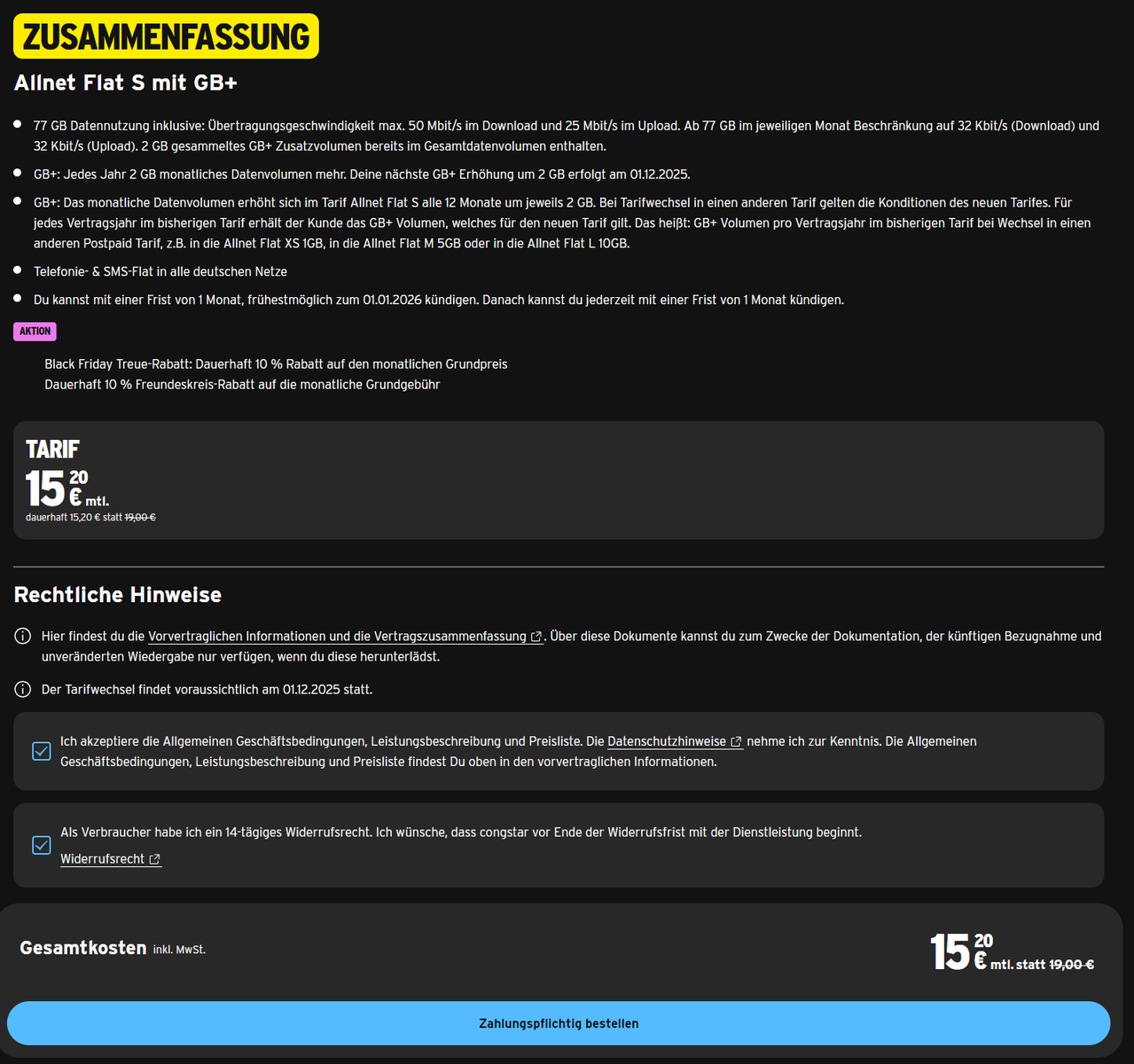 Könnt ihr mir den BF Rabatt bitte noch nachträglich hinzufügen, sodass ich dann bei den 15,20 EUR lande?
