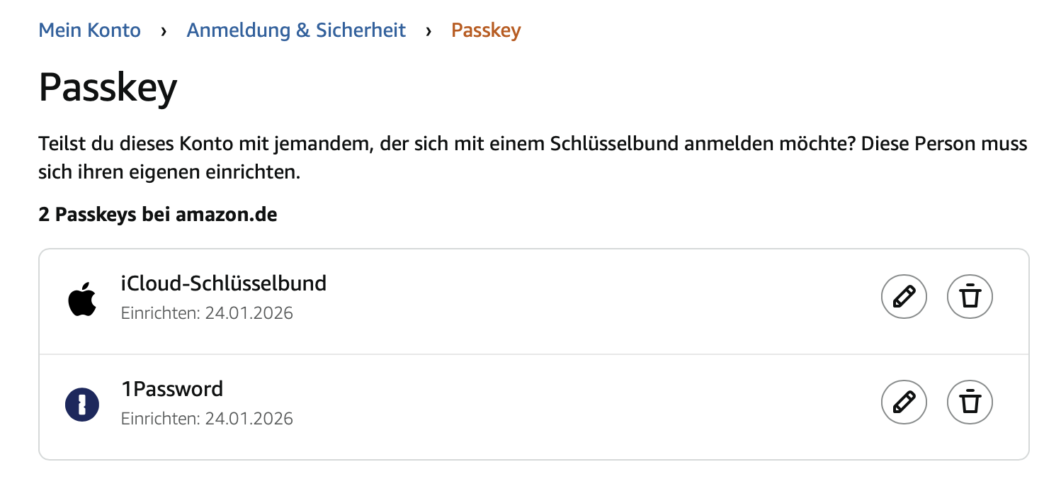 Die Dokumentation ist also in diesem Punkt fehlerhaft. Auch ich hätte mir hier das Gegenteil gewünscht, dass weiterhin mehrere Passkeys funktionieren. Die Dokumentation erklärt ja auf schöne Weise, warum das sinnvoll ist und in manchen Fällen nötig sein kann. Dass hier einfach ohne Erklärung wichtige Funktionen wegfallen, die zuvor schon anders dokumentiert wurden, ist ziemlich enttäuschend.