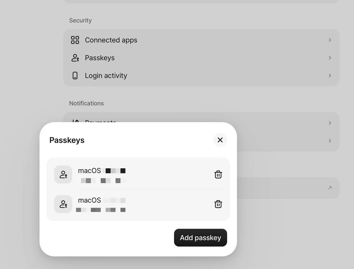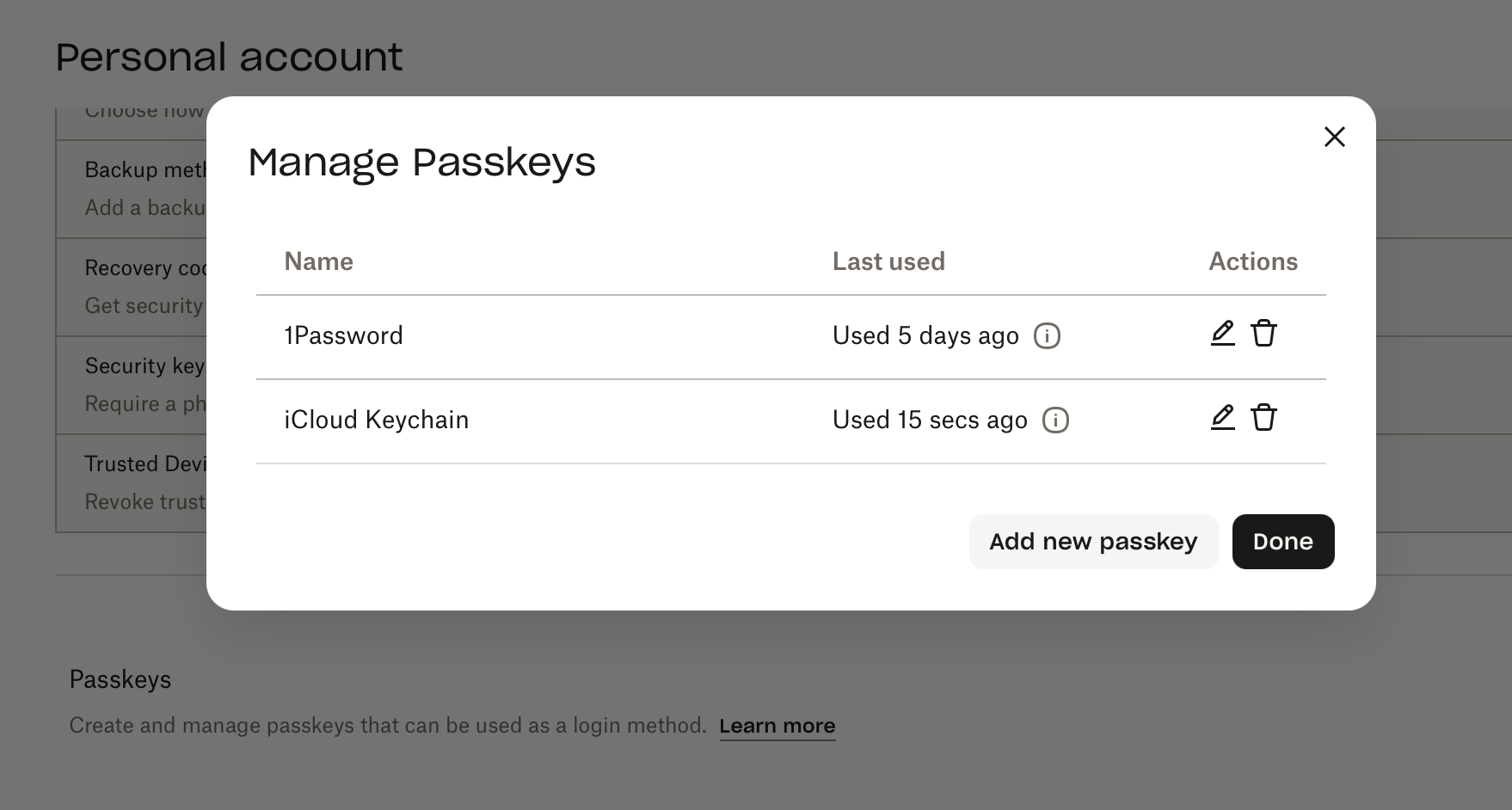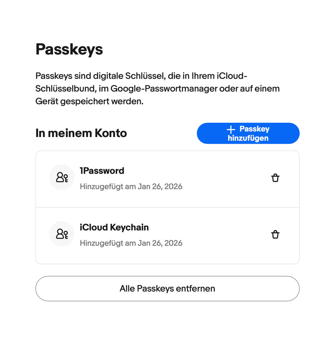 Es kann nur ein Passkey angelegt werden, die Info auf der Seite muss noch geändert werden.