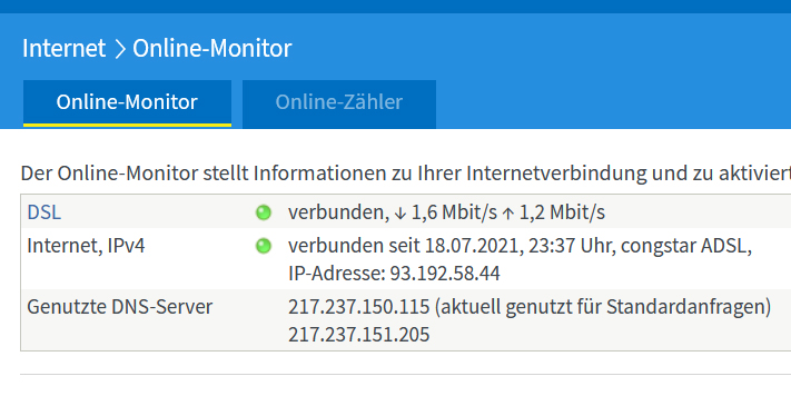 Gestern waren das 3.6Mbit/s, jetzt 1.5Mbit/s.