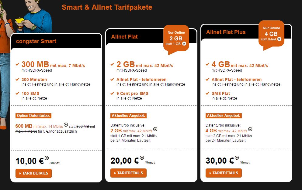 Tarifwechsel sind grundsätzlich kostenfrei bei Congstar.