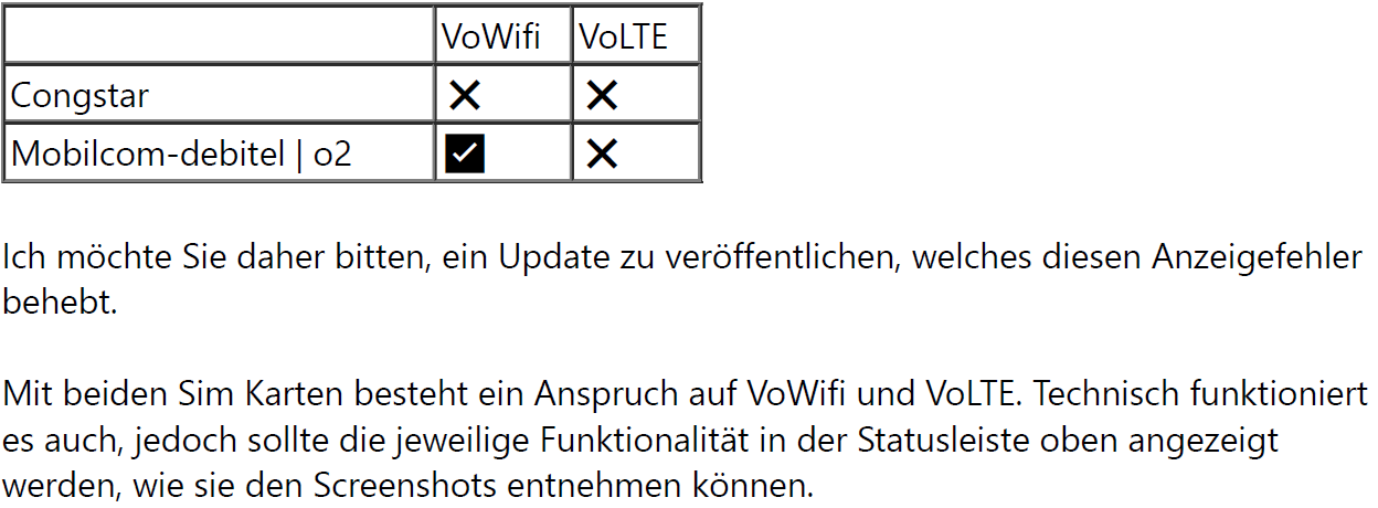 Über diese App kommst du in ein verstecktes Menü. Die früheren Codes funktionieren seit Android 12 nimmer. In diesem Menü siehst du Infos wie, Netzwerktyp, Sprachtyp, Signalstärke, aktuelles Netzwerk, uvm. Davon würde ich ein Screenshot in der Mail anhängen + Systeminfos, damit die sehen können welches Gerät du hast und welche Version. Je mehr Infos, desto besser...