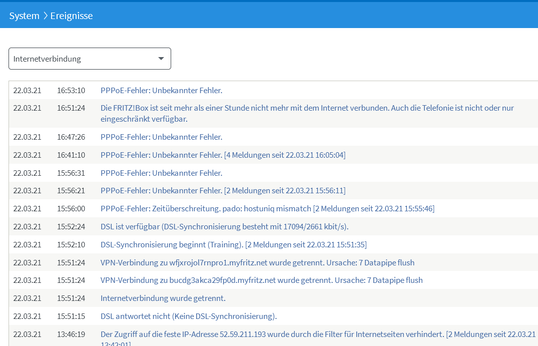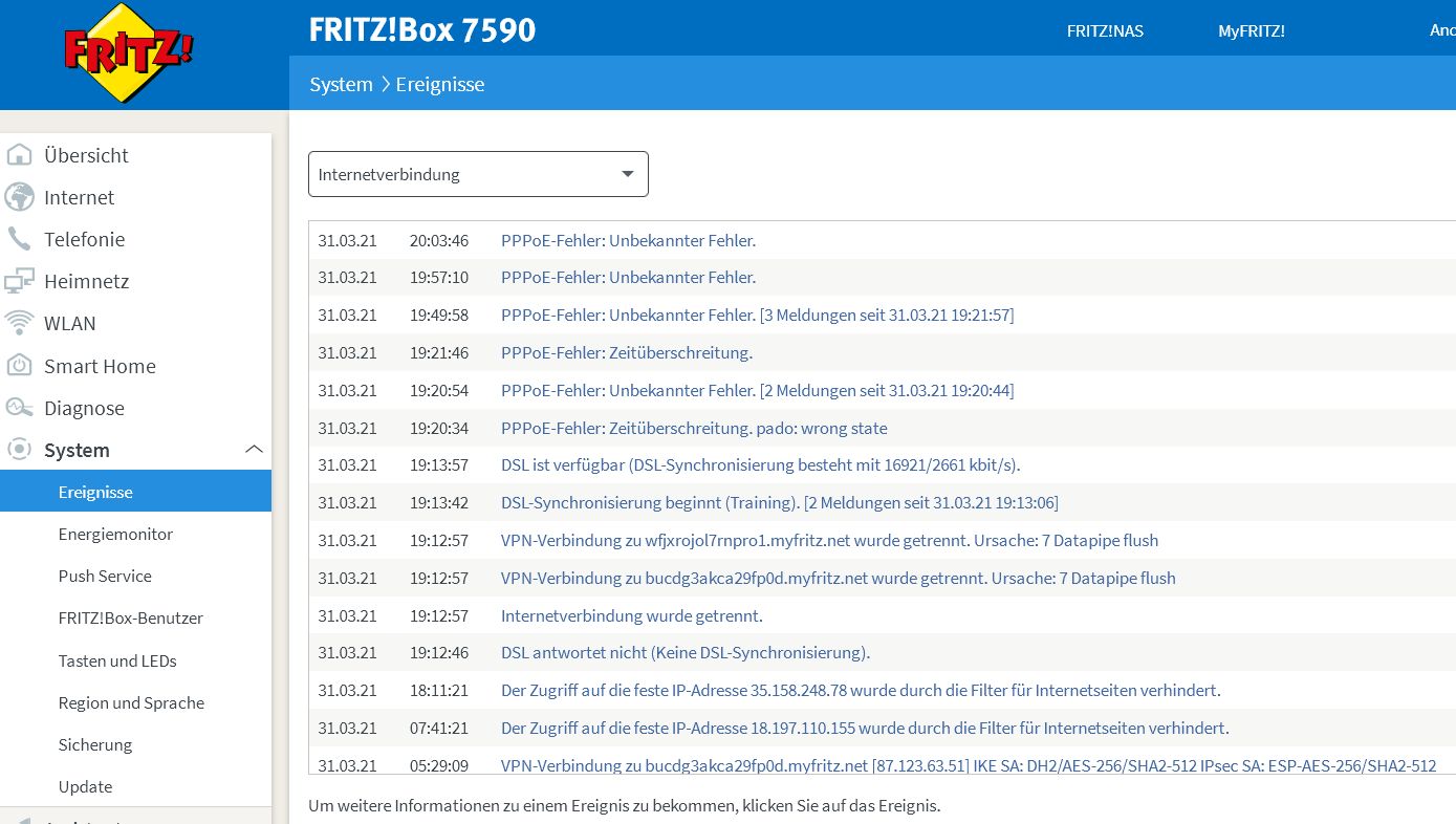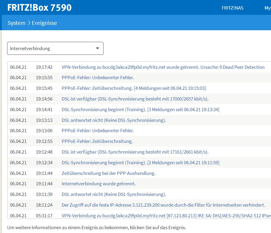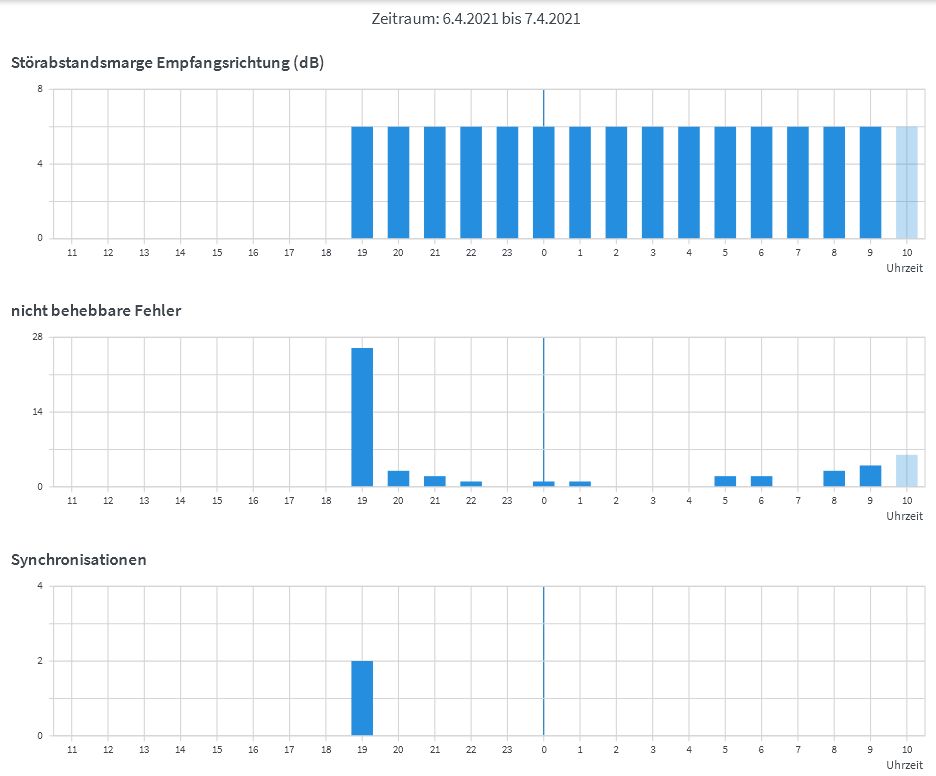 Screenshot siehe oben, zahlreiche "nicht behebbare Fehler", die sich dadurch bemerkbar machen, dass Internetseiten entweder langsam laden oder erst nach mehreren Versuchen angezeigt werden. Ich habe das mit allen Clients, auch mit Android-Apparaten im WLAN.