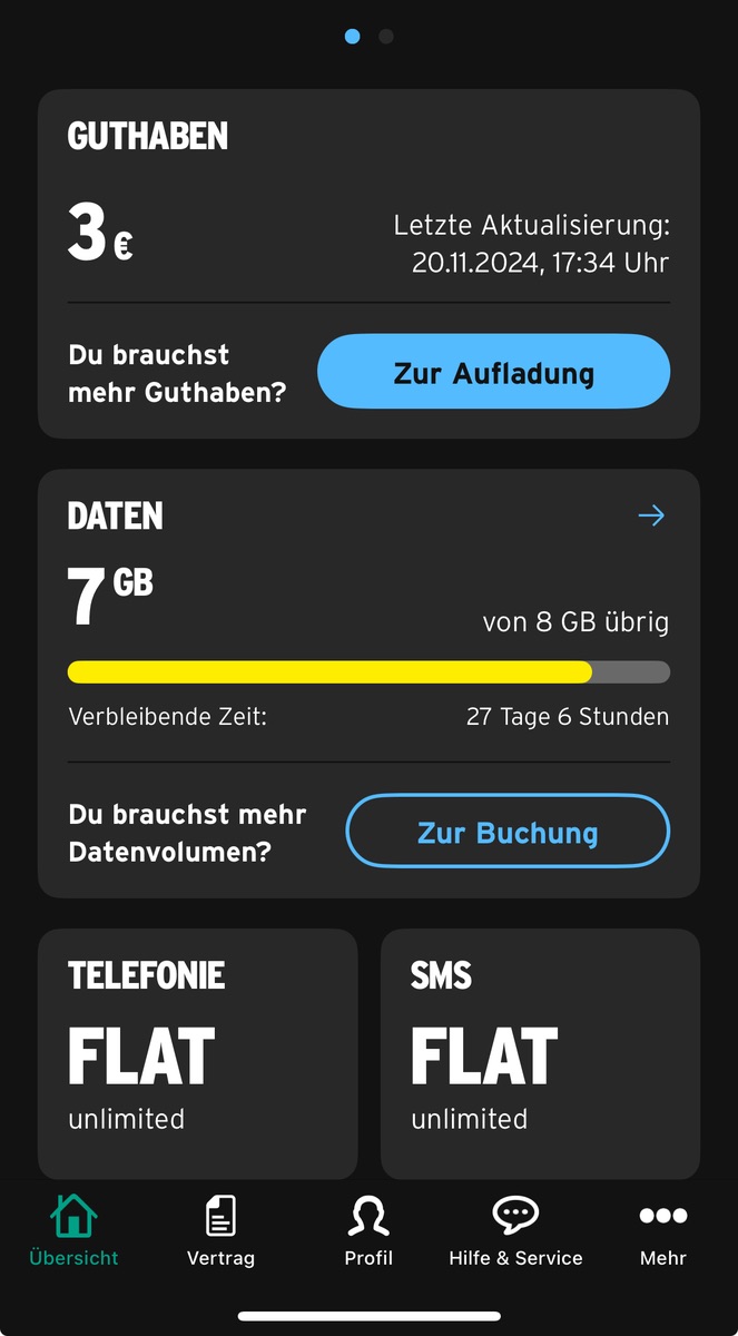 Auffällig war bisher nur, dass beide Tarife nur 8 GB Datenvolumen erhielten. Das wollte ich erstmal abwarten, ob sich der Rest noch nachbucht.